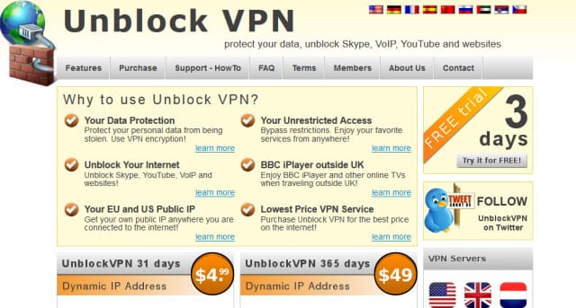 允许用户从 Windows、Mac 或 Linux 连接。在美国和欧洲设有服务器。